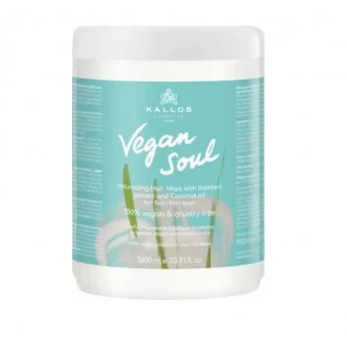 H Kallos Cosmetics Vegan Soul Volumizing Hair Mask είναι μια μάσκα μαλλιων εμπλουτισμένη με βιταμίνες, εκχύλισμα Bamboo, Aloe Vera, Ginseng και έλαιο καρύδας. Ενυδατώνει βαθιά ενώ ενισχύει την ελαστικότητα και προσφέρει όγκο στα λεπτά μαλλιά. Δεν περιέχει parabens,σιλικόνες,χρωστικές,ζωικά προϊόντα ..